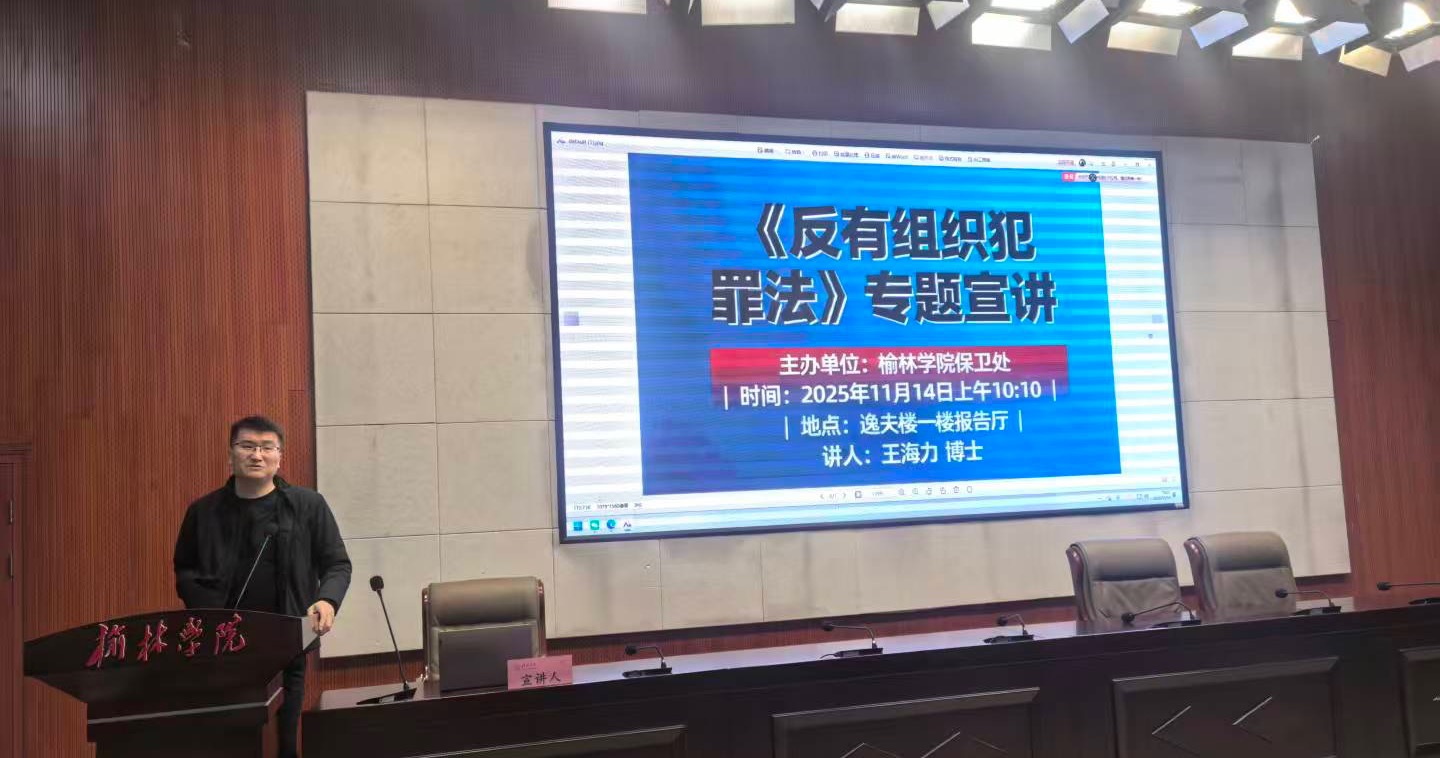 11月14日上午,《中华人民共和国反有组织犯罪法》专题普法讲座在我校逸夫楼一楼报告厅顺利开展。讲座邀请我校法学与历史文化学院教师王海力作专题普法宣讲,各二级学院辅导员、学生干部等200人参加。
